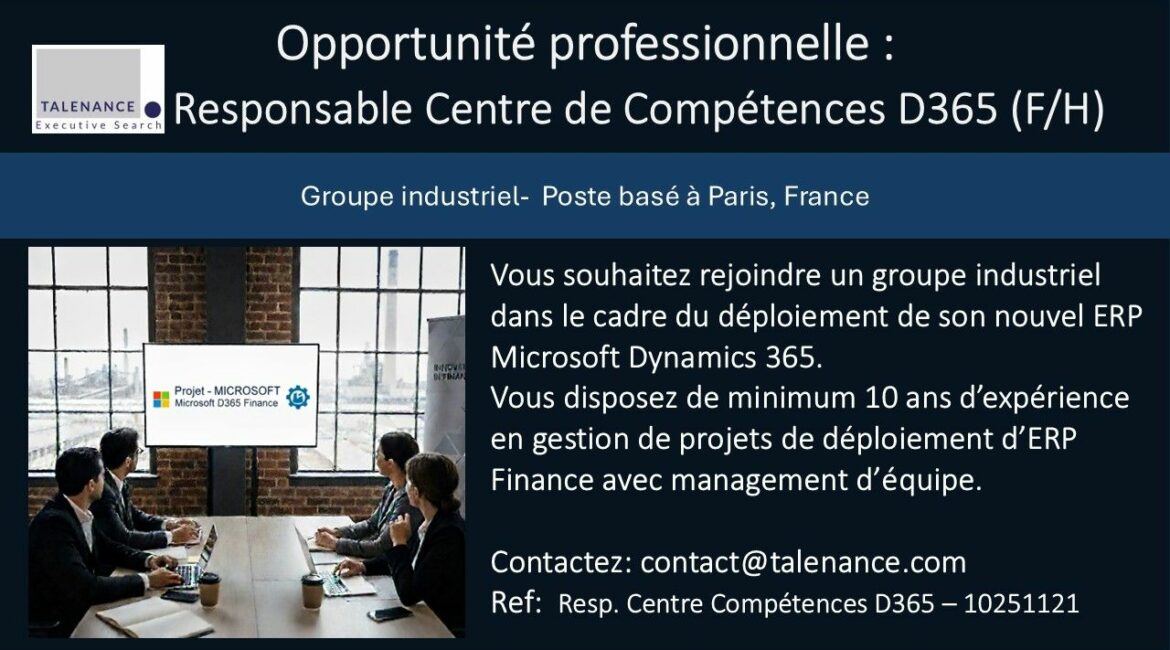 Responsable Centre de Compétences D365 H/F In OpportunitésPosted 02.12.2025 Postuler à cette opportunité